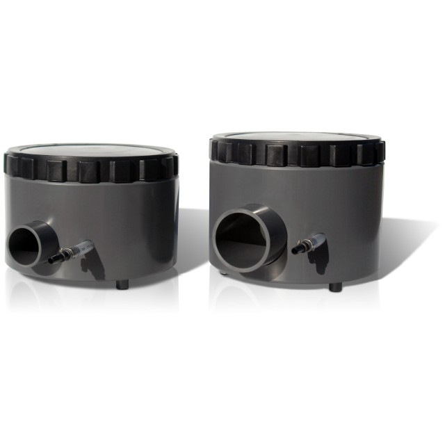 Simply fill the ballast area of the drain with small stone, sand, or other heavy inert material. Then attach a suction hose or rigid plumbing to the side port of the drain and attach to the pump suction line. Place the drain in the center or the deepest part of the pond so that the pump can easily suck up suspended solids and debris from the bottom of the pond. During the winter months, the drain can be easily moved to a more shallow part of the pond leaving the warmer water in the lower parts of the pond undisturbed where the fish collect in colder temperatures.